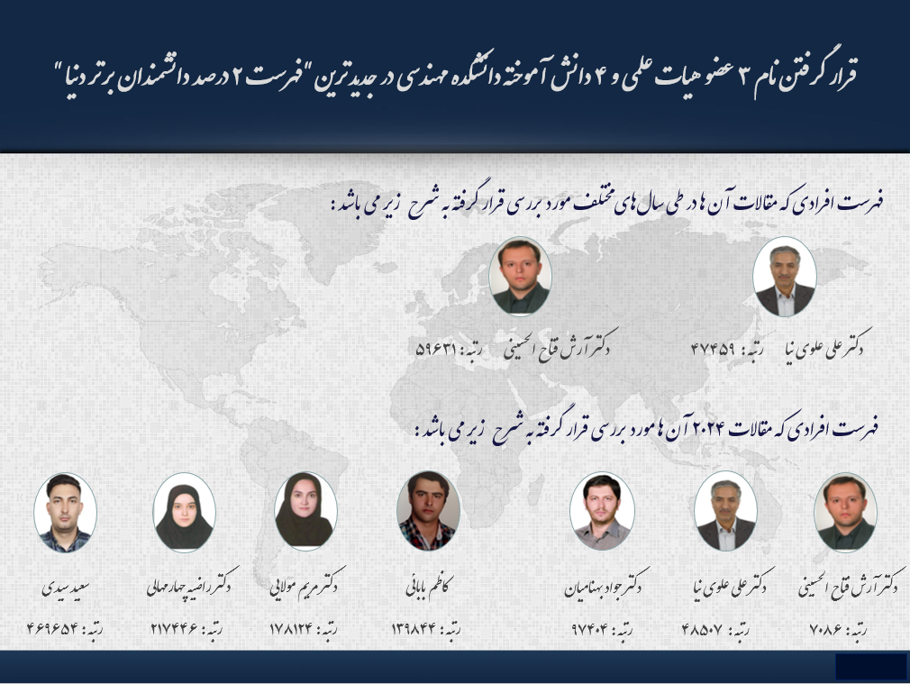 قرار گرفتن نام سه دانشجوی مهندسی مواد کاظم بابایی، مریم مولایی و راضیه چهارمهالی در «فهرست دو درصد دانشمندان برتر دنیا» 2025 (لینک خبر)